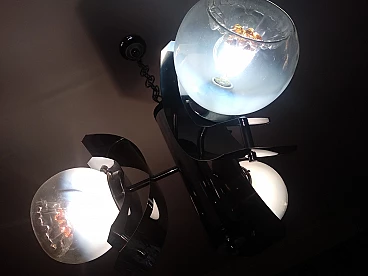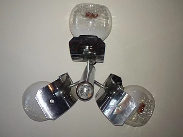Lampadario con struttura cromata e diffusori in vetro, anni '70