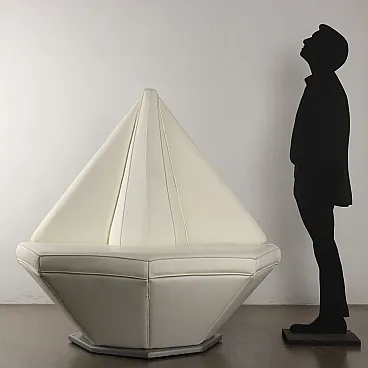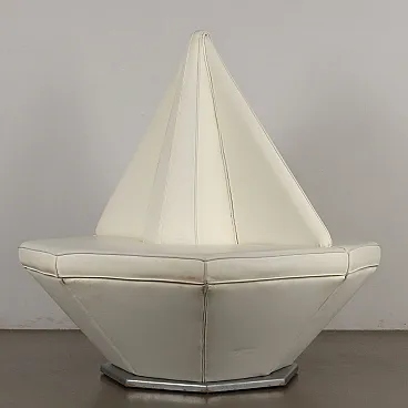 Divano poligonale in similpelle bianco, anni '80