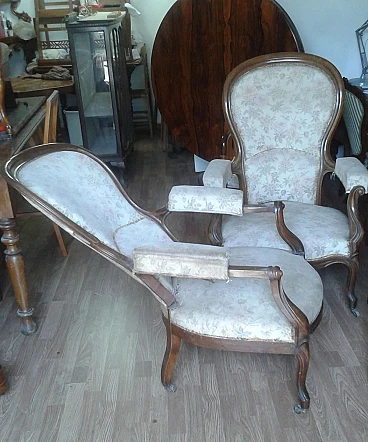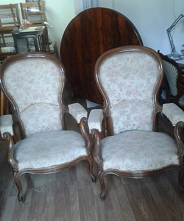 Coppia di poltrone reclinabili Voltaire in noce, '800