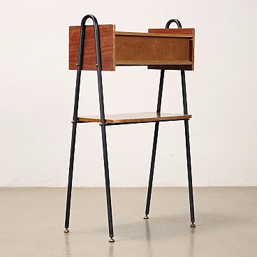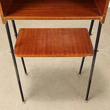 Comodino impiallicciato in mogano con vano a giorno, anni '60