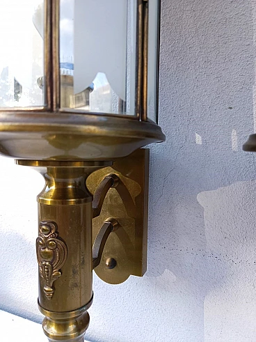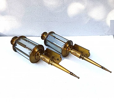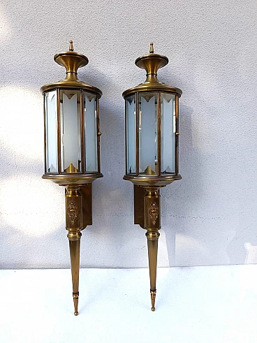 Coppia di applique in bronzo dorato e vetro, anni '60