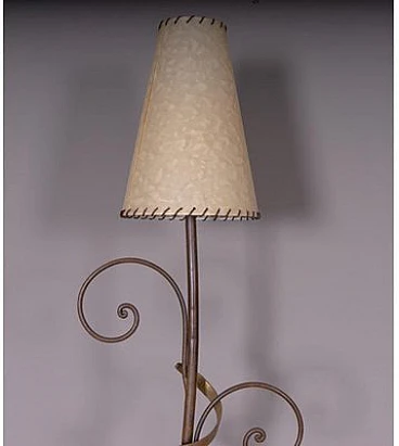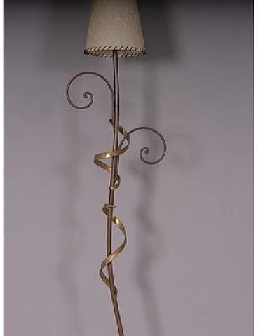 Lampada da terra in metallo con paralume in pergamena, anni '80