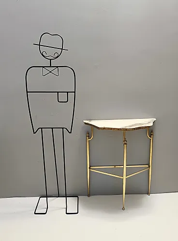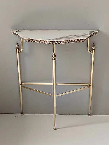Consolle in ottone e marmo Rosa Portogallo, anni '50