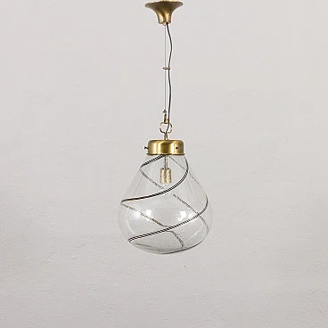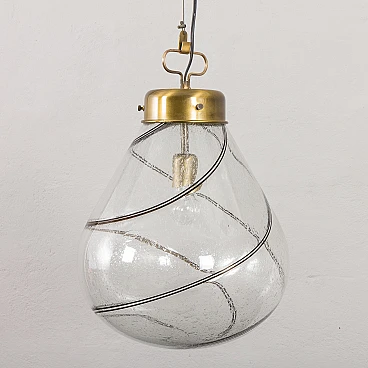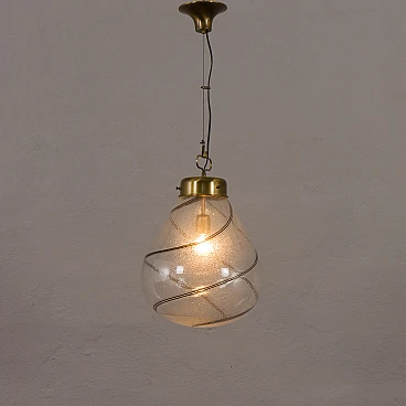 Lampada in vetro di Murano trasparente con motivo a spirale, anni '70
