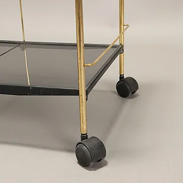 Carrello bar pieghevole in metallo ottonato e plexiglass, anni '80