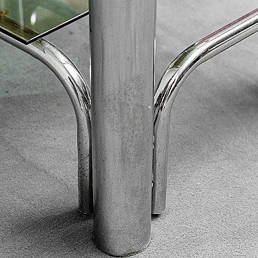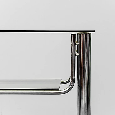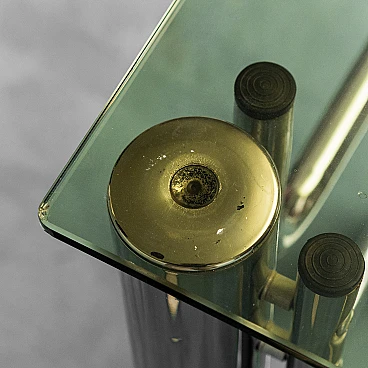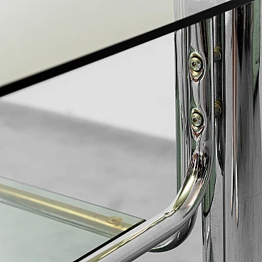 Tavolo porta-tv in metallo con 3 ripiani in vetro, anni '70