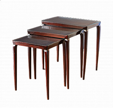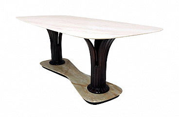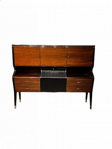 Tra i designer più ricercati dai collezionisti di tutto il mondo, negli anni '30 Osvaldo Borsani (Varedo 1911 – Milano, 1985) assume il ruolo, prima ancora di laurearsi in architettura, di direttore artistico della ditta fondata in Brianza negli anni '20 dal padre Gaetano. Nel 1935, la Gaetano Borsani/Atelier di Varedo apre nel cuore di Milano il negozio Arredamenti Borsani: è qui che Osvaldo crea i suoi mobili, spesso pezzi unici, espressioni di un gusto '900 alleggerito nei volumi, e reso unico da scanalature e intagli decorativi che movimentano, mediante materiali a contrasto, le superfici dei suoi arredi. Se negli anni '40 l’azienda adotta linee sempre più assottigliate, gli anni '50 segnano la svolta radicale, grazie alla collaborazione di Osvaldo con il fratello Fulgenzio, verso la produzione di serie: cambia anche il nome della ditta, che nel '54 diventa Tecno, a sottolineare il connubio tra la tecnologia all’avanguardia e la ricercatezza formale che caratterizza i modelli della Tecno, prodotti in serie e meticolosamente realizzati. Il marchio collabora con importanti progettisti, da Carlo de Carli a Eugenio Gerli, che ne orientano la produzione verso arredi dal carattere polifunzionale: mobili da ufficio, sedie pieghevoli, poltrone smontabili, tavolini girevoli.