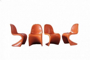 Noto per le sedie innovative e colorate che ha progettato negli anni '60, il designer danese Verner Panton (Copenaghen, 1926 – Basilea, 1998) inizia la carriera di progettista nel '51 in seguito al diploma presso la Royal Danish Academy of Fine Arts di Copenhagen. Dopo un breve periodo in cui assiste l'architetto e designer danese Arne Jacobsen, incomincia a lavorare alle sue sedute, che sono pioniere del concetto di comfort sia per la sensibilità verso le problematiche posturali dei singoli individui, che Panton studia e tiene in conto in ogni progetto, sia per le forme avvolgenti, che spesso hanno associato la sua produzione al lavoro di Joe Colombo e alla Space Age. Nel 1960 Panton progetta la sedia che diventerà un grande classico del '900, la Panton Chair, prodotta dal 1967 da Vitra: risultato della combinazione di una struttura a sbalzo con una forma antropomorfa, ha il primato di essere la prima sedia prodotta con un solo foglio di plastica flessibile. Panton la declinerà in altri modelli con diverse imbottiture e materiali.