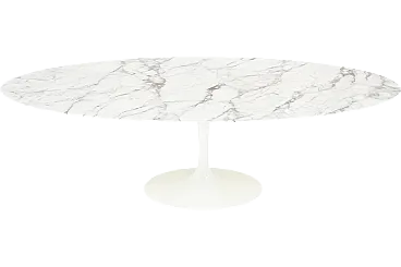 Pioniere dell'utilizzo delle imbottiture di espanso nell'arredamento, Eero Saarinen (1910–1961) è il grande architetto americano delle imprese degli anni '50. Finlandese ma statunitense di adozione, si diploma a Yale nel 1934, e prosegue la sua formazione presso il Cranbrook Institute of Architecture and Design, dove si appassiona alla scultura. L'amore per questa disciplina si riflette nelle forme "spaziali" dei suoi edifici, che trovano la massima espressione in capolavori come il terminal TWA dell’aeroporto JFK di New York. Il primo riconoscimento critico, nel 1940, gli arriva per un arredo: con Charles Eames, Saarinen vince il primo premio al concorso "Organic Design in Home Furnishings" grazie a una sedia progettata insieme, la Tulip, che darà il nome all’iconica serie di sedie, poltrone e tavoli da pranzo progettati da Saarinen e prodotti da Knoll negli anni '50 in fibra di vetro rinforzata. L'eleganza, abbinata all'efficienza, rendono questi arredi dei traguardi dell'ingegneria e della tecnologia costruttiva dell'epoca, perché sono il raggiungimento del massimo risultato attraverso il minimo dei mezzi. Noto per il suo perfezionismo, Saarinen è stato anche lo scopritore di alcuni importanti progettisti con cui ha instaurato importanti collaborazioni, come Charles Eames e Robert Venturi.