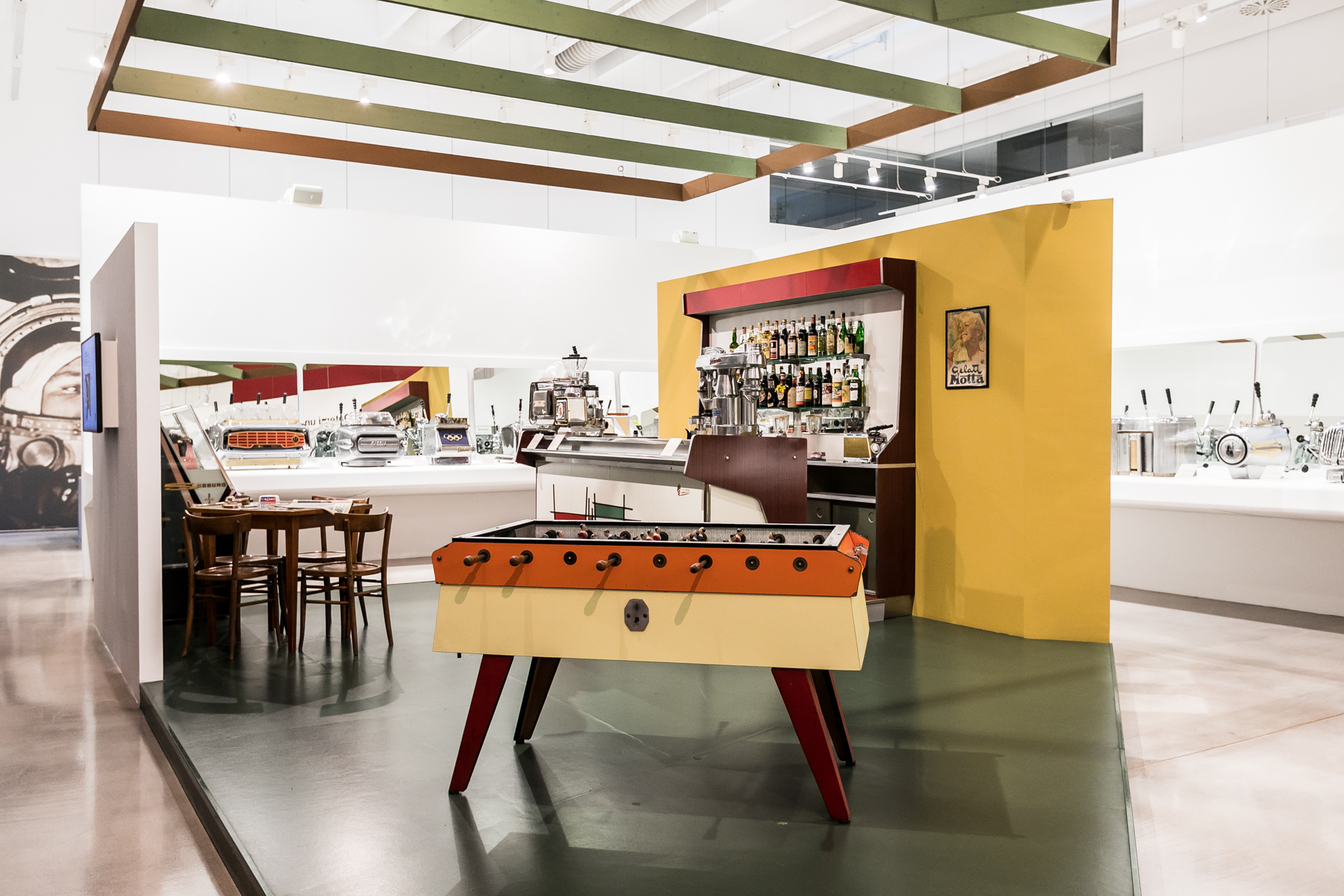 Sala dopo sala, si sttraversa oltre un secolo di storia scoprendo quanto il rituale del caffè sia un grande orgoglio italiano fin dai primi del '900, quando le macchine da caffè erano verticali e funzionavano a vapore. Dal periodo del Liberty e dell’Art Nouveau, passando per il razionalismo degli anni '30 — epoche in cui il caffè era ancora un bene elitario —, si approda a un accogliente spazio che mette in scena il tipico bar anni '50, con arredi in formica e un'immancabile biliardino. Il boom economico del Dopoguerra portava con sé un’esplosione di creatività: erano gli anni d'oro del design, e non evolveva solo il look delle macchine per caffè, ma anche la tecnologia che le supportava.