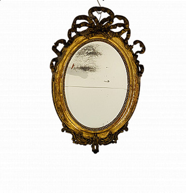 Specchio con cornice in legno intarsiato con finitura in foglia d'oro, '800