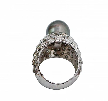 A questo ordine non verrà aggiunto alcun costo aggiuntivo. Le spese di spedizione sono totalmente a carico del venditore (dazi doganali inclusi). Questa politica non è applicabile agli articoli a prezzo fisso, agli articoli in asta, alle promozioni in corso e agli articoli in saldo; scrivere al venditore per ulteriori informazioni. Incredibile anello con struttura in oro bianco 14 kt montato con una perla grigia in una cornice di diamanti. Questo anello è stato realizzato totalmente a mano da maestri orafi italiani ed è in perfette condizioni. Diamanti 2.06 ct. Perla 2,90 gr - 12,5 mm. Peso totale 14.50 gr RF +FEHO. Italiano taglia 16. Usa taglia 7.5. Francese taglia 56. Per qualsiasi informazione, sentiti libero di contattare il venditore attraverso il centro messaggi.