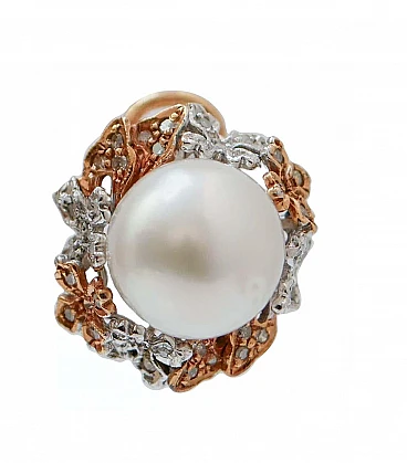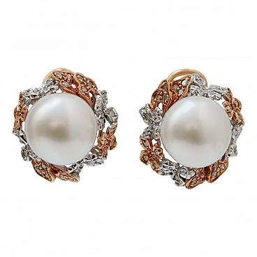 Orecchini con perle dei mari del sud, diamanti, oro bianco e rosa