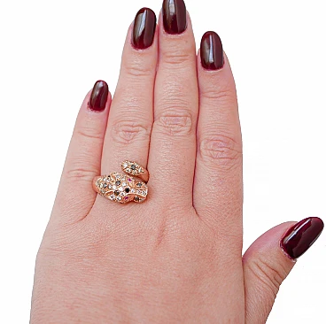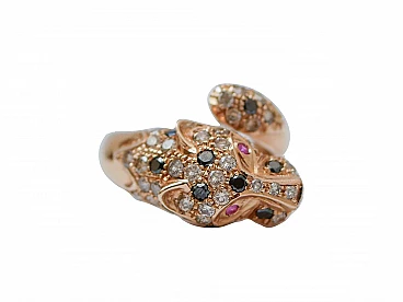 A questo ordine non verrà aggiunto alcun costo aggiuntivo. Le spese di spedizione sono totalmente a carico del venditore (dazi doganali inclusi). Questa politica non è applicabile agli articoli a prezzo fisso, agli articoli in asta, alle promozioni in corso e agli articoli in saldo; scrivere al venditore per ulteriori informazioni. Anello Pantera fashion con struttura in oro rosa 14 kt tempestata di diamanti bianchi e diamanti neri sulla testa e sulla coda. Come occhi, due rubini. Questo anello è stato realizzato totalmente a mano da maestri orafi italiani ed è in perfette condizioni. Diamanti 1,58 ct. Rubini 0,04 ct. Peso totale 5.80 gr RF ++FFGO RK.AFRU,CF. Italiano taglia 16, Usa taglia 7.5, francese taglia 56. Per qualsiasi informazione, sentiti libero di contattare il venditore attraverso il centro messaggi.