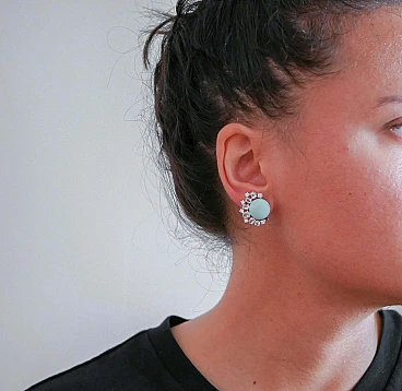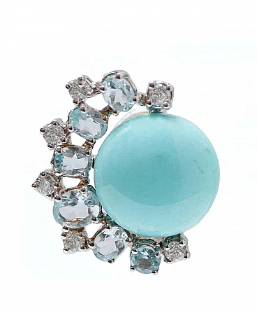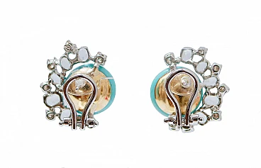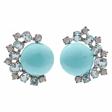 A questo ordine non verrà aggiunto alcun costo aggiuntivo. Le spese di spedizione sono totalmente a carico del venditore (dazi doganali inclusi). Questa politica non è applicabile agli articoli a prezzo fisso, agli articoli in asta, alle promozioni in corso e agli articoli in saldo; scrivere al venditore per ulteriori informazioni. Incredibili orecchini con struttura in oro bianco 18 kt montati con un fondo di turchese circondato da acquamarina e diamanti. Questi orecchini sono stati realizzati totalmente a mano da maestri orafi italiani e sono in perfette condizioni. Diamanti 0,67 ct. Acquamarina 3.15 ct. Turchese 3.00 gr. Peso totale 10,30gr RF +OUOI. Per qualsiasi informazione, sentiti libero di contattare il venditore attraverso il centro messaggi.