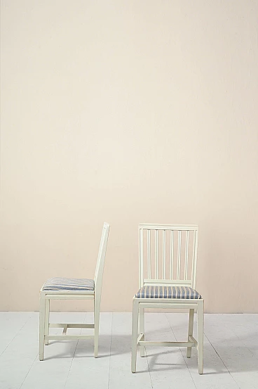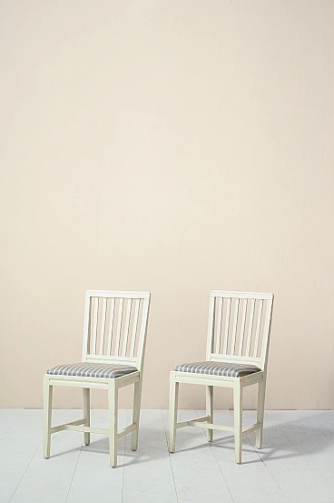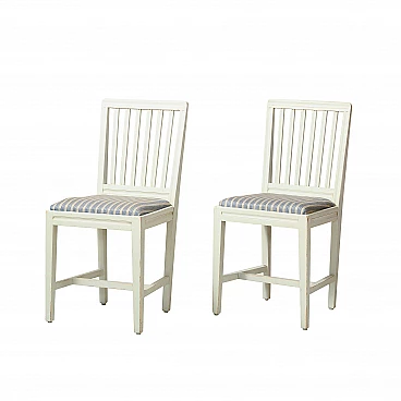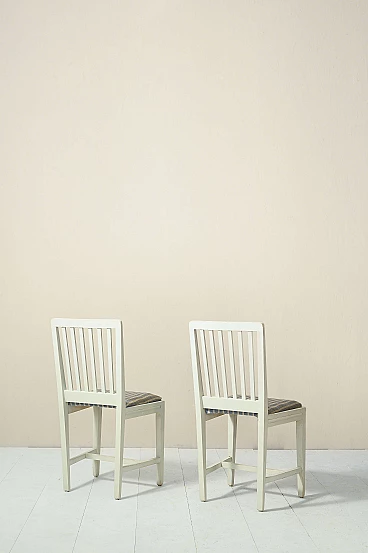 Coppia di sedie svedesi in legno e tessuto, prima metà del 900