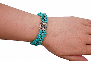 Bracciale in oro rosa e argento con diamanti e turchese, 2020
