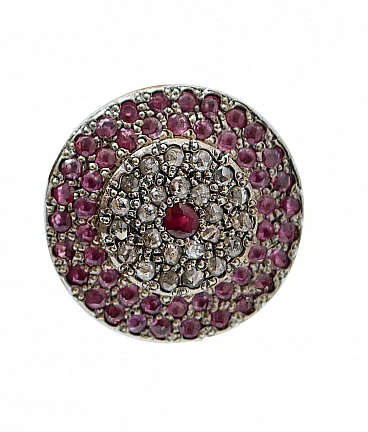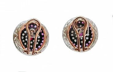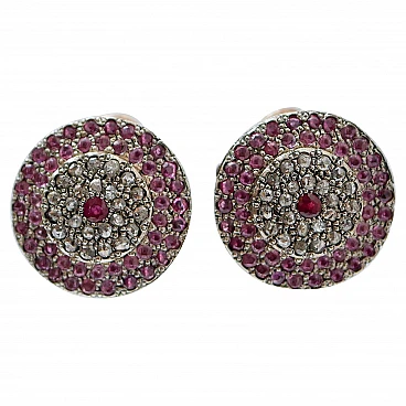 A questo ordine non verrà aggiunto alcun costo aggiuntivo. Le spese di spedizione sono totalmente a carico del venditore (dazi doganali inclusi). Questa politica non è applicabile agli articoli a prezzo fisso, agli articoli in asta, alle promozioni in corso e agli articoli in saldo; scrivere al venditore per ulteriori informazioni. Orecchini in oro rosa 9 kt e struttura in argento montata con un rubino centrale circondato da una cornice di diamanti e rubini. Questi orecchini sono stati realizzati totalmente a mano da maestri orafi italiani e sono in perfette condizioni. Diamanti 1,50 ct. Rubini 4,42 ct. Peso totale 11.30 gr. RF +GGGE. Per qualsiasi richiesta, si prega di contattare il venditore attraverso il centro messaggi.