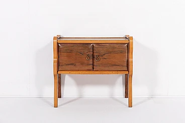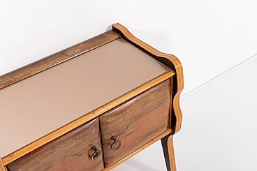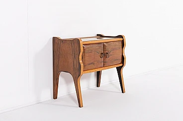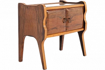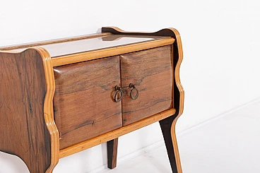 Comodino scultoreo Mid-Century in legno e vetro, anni '50