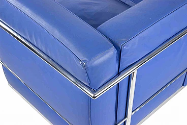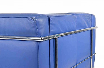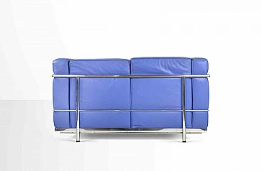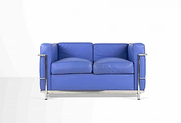 Il divano vintage LC2 è un sofisticato complemento d'arredo di design realizzato negli anni '70. Creato per Cassina. Questo originale divano a due posti ha una struttura in acciaio inox su tessuto azzurro. Buone condizioni. Decora il tuo salotto con questa iconica poltrona LC2 Two Seats Sofa è un modello senza tempo, l'unico e autentico realizzato da Le Corbusier per Cassina, che ha fatto la storia del design diventando a pieno titolo un'icona di fama mondiale. Pensato per la comodità della conversazione, il divano fu esposto al Salon d’Automne di Parigi nel 1929, come archetipo della moderna concezione di arredamento, inteso dagli autori come “apparecchiatura domestica”. L'indipendenza tra la struttura metallica e la cuscinatura è in linea con i principi del razionalismo, così come la separazione tra le parti segue la logica della produzione industriale, evocando il rapporto architettonico tra la struttura portante in cemento e gli elementi di tamponamento. L'equilibrio tra forma e funzione nasce da uno studio approfondito della postura corporea e dall'utilizzo del Modulor, un sistema basato sulle misurazioni tipiche del corpo umano e su un linguaggio matematico legato alle proporzioni dell'armonia universale.