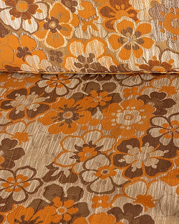 Sedia a dondolo in legno con tessuto a tema floreale, anni '60
