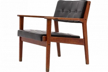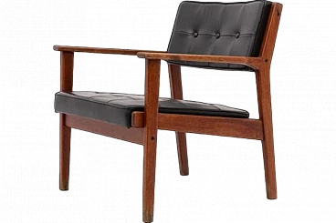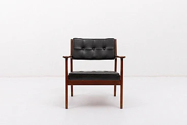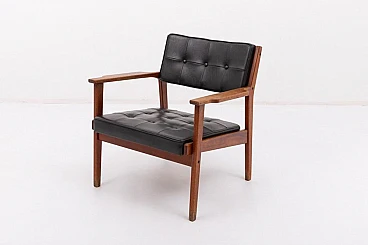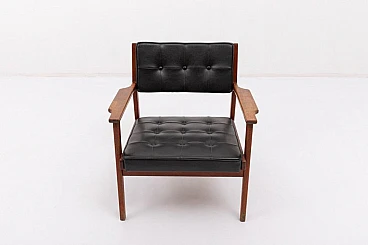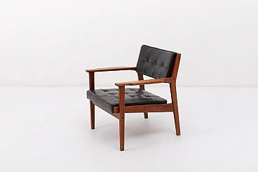 Sedia Mid-Century architettonica in legno e tessuto, anni '60