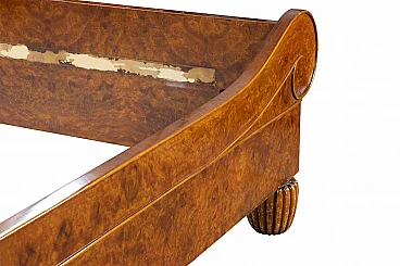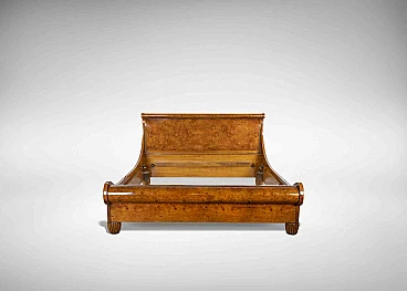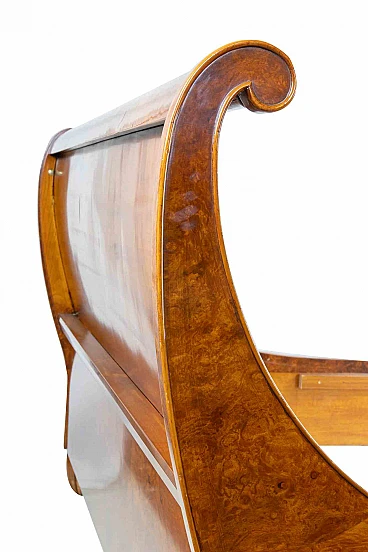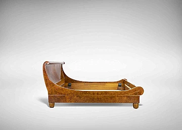 Elegante set da camera Biedermaier, attribuito alla bottega di Joseph Ulrich Danhauser. In ottime condizioni e comprende camera da letto (cm 110 x 230 x 183 cm), scrivania (60x42x60 cm), sgabello, consolle (85 x 45 x 109 cm) e 2 comodini. Joseph Ulrich Danhauser (14 marzo 1780 a Vienna; † 9 gennaio 1829 a Vienna) era un produttore di mobili sul Wieden vicino a Vienna durante il periodo Biedermeier. Dopo la formazione come scultore all'Accademia di belle arti, Joseph Ulrich Danhauser fondò la "Etablissement per tutti gli oggetti di arredamento" nel 1804, dove proponeva mobili, tende, tappezzerie, tappeti nonché articoli in bronzo e vetro. Il Palais Czernin (a volte chiamato anche Palais Czernin-Althan) nella Favoritenstrasse gli servì come impianto di produzione, la maggior parte del cui giardino vendette come terreno edificabile. Nel nostro laboratorio, dove già intorno al 1808 lavoravano più di 100 persone, secondo i nostri disegni venivano realizzati mobili, lampade, telai per pipe, fucili e stecche da biliardo, telai per ricamo, paraventi per stufe, nonché pulpiti e altari. , con il quale riuscì a imitare il bronzo come decorazione per mobili e altri arredi, ebbe molto successo. Nel 1812 la Hofkammer gli concesse il privilegio esclusivo di produrli. A causa della grande richiesta dei suoi prodotti, che offrivano una soluzione completa per la progettazione dello spazio abitativo, furono aperte filiali a Graz e Budapest. Inoltre i clienti potevano selezionare dai cataloghi l'arredamento per i loro appartamenti o case. Indirizzi importanti dotati dei suoi prodotti erano il Palazzo dell'Arciduca Albrecht (l'odierna Albertina), il Weilburg a Baden, il Palazzo Laxenburg vicino a Vienna, il Geymüllerschlössel a Vienna e parti di Graz Castello. Dopo la morte di Josef Ulrich Danhauser, la fabbrica fu portata avanti dalla vedova di Danhauser, che fallì nel 1834. Successivamente la fabbrica passò al figlio Franz, che fallì nel 1841. I locali della fabbrica furono successivamente utilizzati da l'Ospedale Wiedner. I mobili per sedersi realizzati da Danhauser sono esposti nella mostra permanente al MAK Vienna. La Biblioteca MAK e Fondo Opere su Carta possiede l'intero patrimonio di disegni del mobilificio (circa 2.500 fogli), digitalizzato nel 2008 e censito in una banca dati.