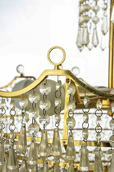 Lampadario con gocce di cristallo, Italia anni '70. Ottone dorato, 10 luci. Ottime condizioni.