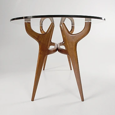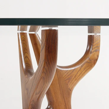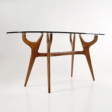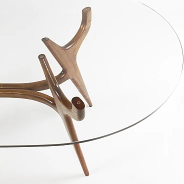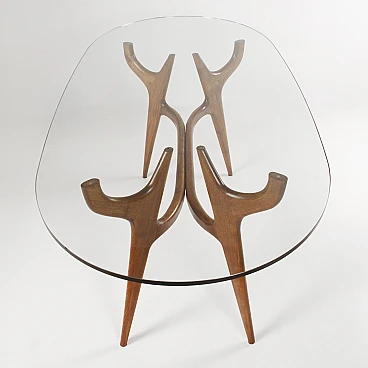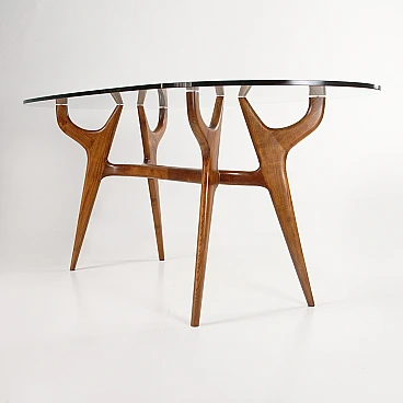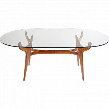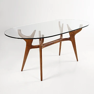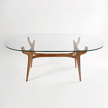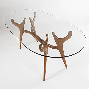 Tavolo ovale in rovere massello con piano in vetro, anni '60