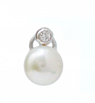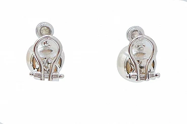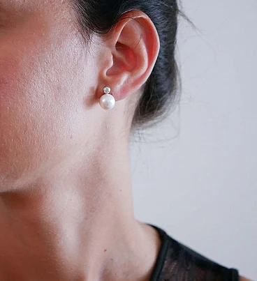 Orecchini in oro bianco 14 carati, perle e diamanti, anni '80