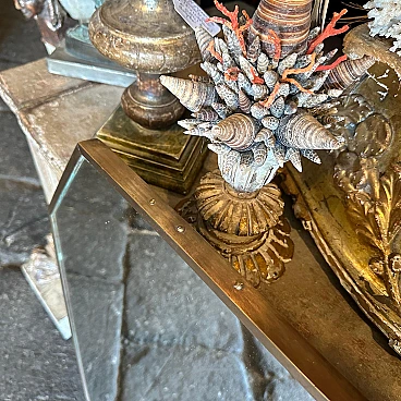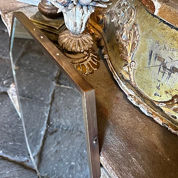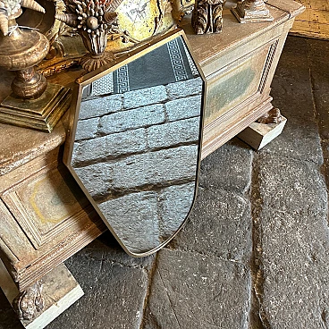 Gli anni '50 sono stati un periodo di grande creatività e innovazione nel mondo del design e il movimento Mid-Century Modern è stato all'avanguardia in questo periodo entusiasmante. Questo specchio da parete italiano in ottone massiccio è uno splendido esempio di questo stile di design e un eccezionale pezzo di artigianato italiano. Realizzato in ottone massiccio, questo specchio vanta una finitura calda e dorata, elegante e sofisticata. Il materiale in ottone è molto resistente e malleabile e permette di creare le linee ampie e fluide che caratterizzano lo stile Mid-Century Modern. La forma a scudo dello specchio è un motivo classico del design del Mid-Century Modern, che rappresenta il movimento e la fluidità. La forma è perfettamente proporzionata, con curve dolci che creano un senso di armonia ed equilibrio. Questo specchio è stato progettato per essere appeso alla parete, con una staffa sicura sul retro che ne garantisce il posizionamento. La cornice in ottone dello specchio è semplice, con linee pulite e un design minimalista che permette allo specchio di essere al centro della scena. La cornice è un omaggio ai principi del design di Giò Ponti, una delle figure più importanti e influenti dell'era del Mid-Century Modern. I suoi progetti erano caratterizzati da un'enfasi sulla semplicità e sulla funzionalità. Nel complesso, lo specchio da parete in stile Giò Ponti è un pezzo di design mozzafiato che cattura lo spirito e la creatività degli anni Cinquanta. Sarebbe un'aggiunta straordinaria a qualsiasi casa o collezione e sarà sicuramente apprezzata per le generazioni a venire. lo specchio è in buone condizioni generali.