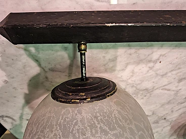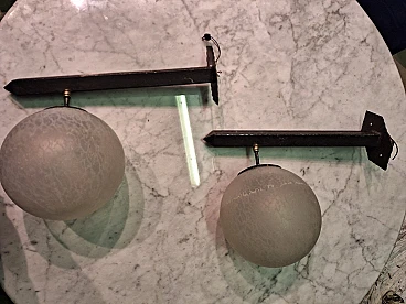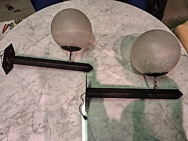 Coppia di applique in ferro e ottone con vetro incisa, anni '60