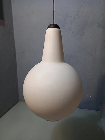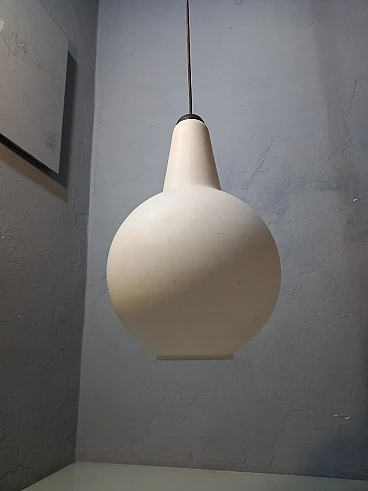Lampada a sospensione in vetro opalino nello stile di Stilnovo, anni '50