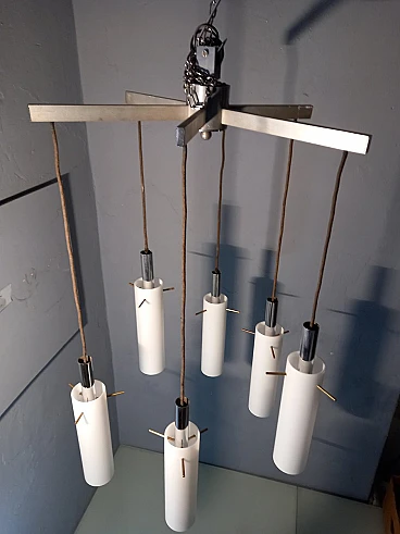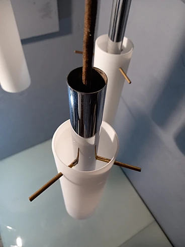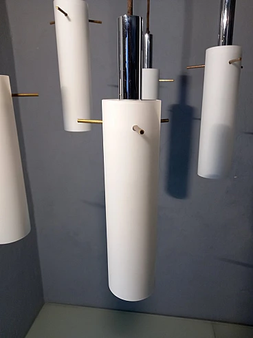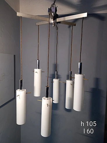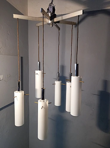 Lampada a sospensione in metallo cromato con 6 vetri opalini di Stilnovo, anni '60
