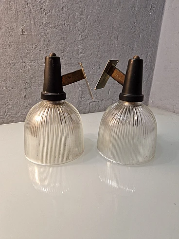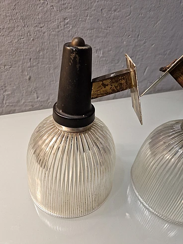 Lampade da parete in ottone con vetro scanalato di Fidenza Vetraria nello stile di Azucena, anni '50, set di 2
