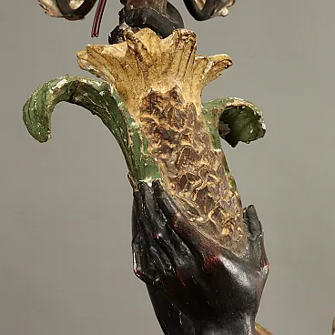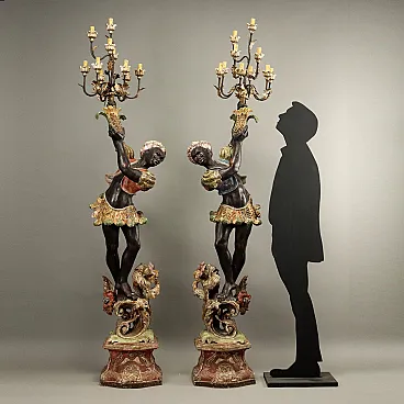 Coppia di Candelieri con sculture di mori policromi in cirmolo