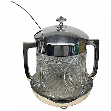 Ciotola per punch in cristallo inciso e piatto d'argento, realizzata da WMF in Germania nella prima metà del XX secolo, è completa in tutte le sue parti, ha anche un cristallo interno per separare le bevande dal ghiaccio.