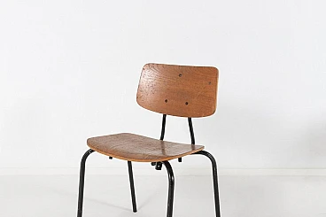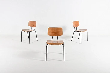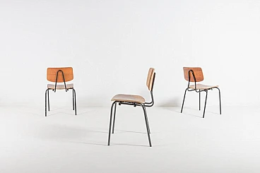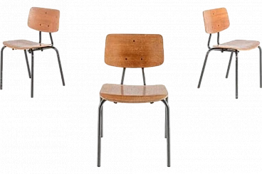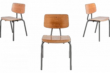 3 Sedie da scuola in acciaio e legno, anni '60