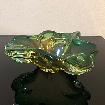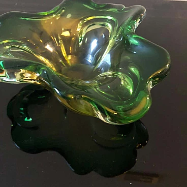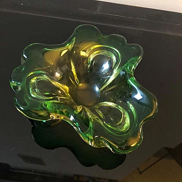 Posacenere in vetro di Murano verde giallo stile Seguso, anni '70