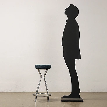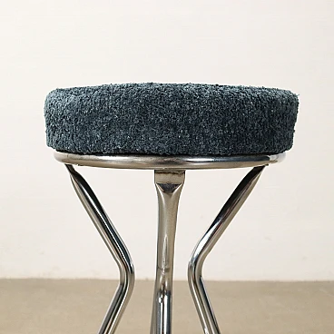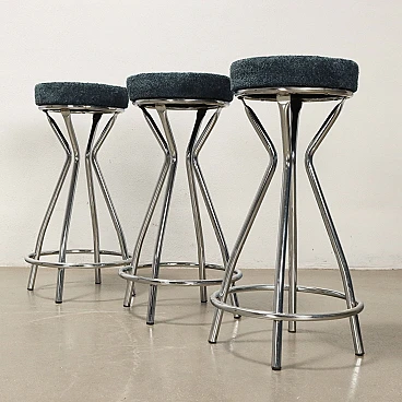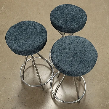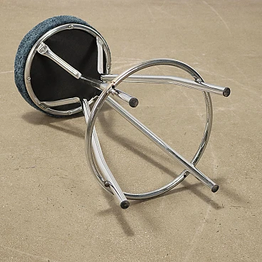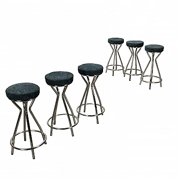 6 Sgabelli in metallo cromato e seduta in tessuto blu, anni '60
