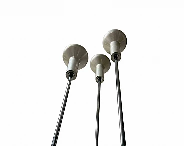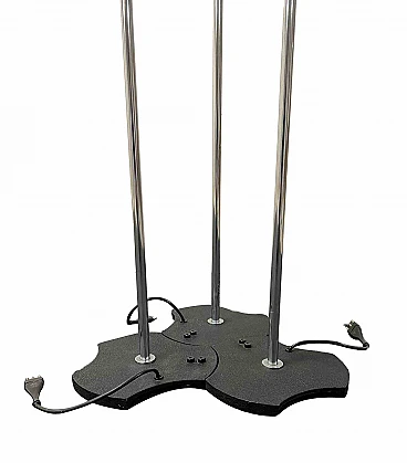 Tre lampade modello 1073/3 in acciaio, alluminio e base in metallo craquelé, di Gino Sarfatti. prod. Arteluce, Italia, 1956 Cm 207x24x24 (grande) Cm 198x24x24 (media) Cm 183x24x24 (piccola)Bibliografia: Gino Sarfatti, opere scelte 1938-1973, p. 454.Buone condizioni! Gino Sarfatti (1912, 1985) nasce a Venezia il 16 settembre 1912. L'infanzia di Gino e dei suoi fratelli è segnata dall'agiatezza economica e dall'ambiente cosmopolita della città lagunare. Nel 1930 si trasferì a Genova per iscriversi alla facoltà di Ingegneria Aeronautica. Nel frattempo, però, la situazione politica peggiora. Nel 1935 il "fermo delle navi", causato dalle sanzioni imposte all'Italia dalla Società delle Nazioni, rovina il padre. All'età di 23 anni Sarfatti è costretto a interrompere gli studi. Si trasferisce a Milano e, nel febbraio 1939, fonda Arteluce. Arteluce ha aperto un negozio in Corso Littorio, oggi Corso Matteotti. Nel 1943, a causa delle leggi razziali e dei bombardamenti su Milano, si rifugia con la famiglia in Svizzera. Subito dopo la Liberazione torna a Milano e riorganizza la produzione. Nel 1950 compie un importante viaggio negli Stati Uniti, durante la sua assenza affida la direzione artistica di Arteluce a Vittoriano Viganò. Nel 1953 il negozio venne completamente ristrutturato da Marco Zanuso e divenne centro dell'attenzione internazionale. Nel 1954 i modelli 1063 e 1065 ottennero il "Grand Prix" alla X Triennale e il modello 559 vinse il Compasso d'Oro. L'anno successivo il premio viene bissato con il modello 1055. I grandi volumi di attività comportano un impegno spasmodico. Dal 1949, la produzione al dettaglio è stata accompagnata da attività di esportazione e progetti su larga scala. Le ultime sono le navi da crociera Michelangelo e Raffaello e l'installazione “nuvola” per il TeatroRegio di Torino. Alla fine del 1973 Sarfatti decise di vendere Arteluce a Flos e si ritirò a vivere nella casa di Griante sul lago di Como. Morì il 6 marzo 1985.