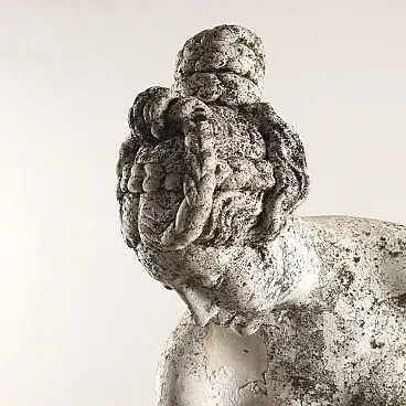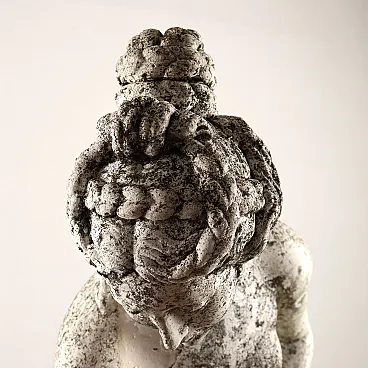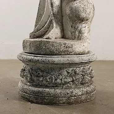 Statua da giardino in graniglia raffigurante "Venere al Bagno", copia dal celebre scultore francese Christophe-Gabriel Allegrain (1710-1795), Italia inizio XX secolo. Poggiante su basamento circolare abbellito lungo il perimetro da festoni floreali.