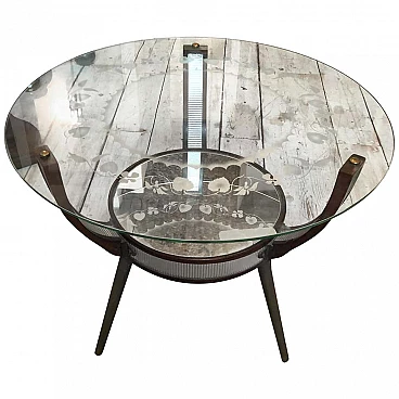 Particolare tavolino in legno e vetro inciso nello stile di Paolo Buffa.