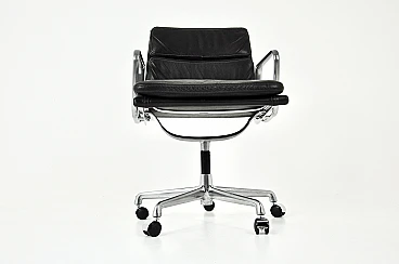 Sedia da ufficio in pelle nera di C. & R. Eames per ICF, anni '60