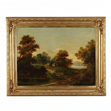 Paesaggio di campagna con figure, olio su tela, '800
