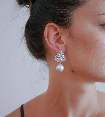 A questo ordine non verrà aggiunto alcun costo aggiuntivo. Le spese di spedizione sono totalmente a carico del venditore (dazi doganali inclusi). Questa politica non è applicabile agli articoli a prezzo fisso, agli articoli in asta, alle promozioni in corso e agli articoli in saldo; scrivere al venditore per ulteriori informazioni. Fantastici orecchini in oro rosa 9 kt e struttura in argento montata con un fiore di diamanti circondato da topazi e diamanti nella parte superiore; come pendente, una perla grigia. Questi orecchini sono stati realizzati totalmente a mano da maestri orafi italiani e sono in perfette condizioni. Diamanti 0.73 ct, topazi 6,63 ct, perle 9,60 gr. Peso totale 19.60 gr RF *GIUE. Per qualsiasi informazione, sentiti libero di contattare il venditore attraverso il centro messaggi.
