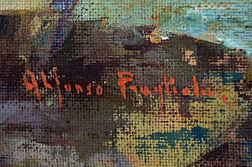 Nato a Giugliano nel 1953. Si trasferisce a Napoli in giovane età. Immergetevi nelle tonalità calde e luminose di "Riverberi al Tramonto" di Alfonso Pragliola. Questo splendido dipinto di paesaggio, che misura 90x80 cm, cattura la bellezza eterea della foresta al tramonto. Pragliola, noto per il suo uso innovativo della tela di juta grezza, utilizza colori a olio, acrilici e pastelli a cera per creare una superficie ricca di texture che dà vita alla scena. L'opera raffigura una tranquilla foresta immersa nella luce dorata del tramonto, dove i colori si fondono perfettamente per trasmettere un senso di pace e serenità. Il gioco di luci e ombre, unito all'uso magistrale del colore da parte di Pragliola, invita lo spettatore a sperimentare lo stato d'animo calmo e riflessivo che la scena evoca. Il dipinto è incorniciato da una sottile striscia di legno dorato, leggermente anticato per esaltare i toni caldi dell'opera. "Riverberi al Tramonto" è un'aggiunta perfetta per i collezionisti d'arte che apprezzano la fusione di temi paesaggistici tradizionali con tecniche moderne e astratte. Non perdete l'occasione di portare la serena bellezza di "Riverberi al Tramonto" nella vostra casa. Aggiungetelo subito al carrello e sperimentate la tranquillità di un tramonto nella foresta, catturata attraverso la visione artistica unica di Pragliola.