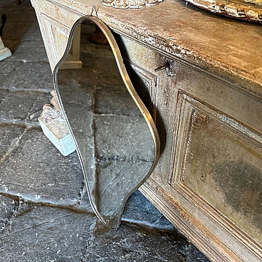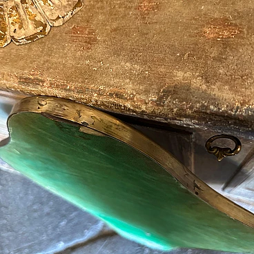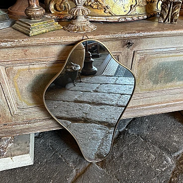 Specchio da parete in ottone progettato e realizzato in Italia da Luigi Fortuna nello stile di Gio Ponti. Questo specchio da parete a forma di pozzo è un pezzo straordinario ed elegante che cattura l'essenza del design di metà secolo. Ispirato al famoso architetto e designer italiano Gio Ponti, questo specchio riflette l'estetica elegante e sofisticata che ha definito l'epoca. Lo specchio è realizzato in ottone massiccio, un materiale comunemente utilizzato a metà del secolo scorso per la sua durata e il suo fascino lussuoso. L'ottone emana una luce calda e invitante, aggiungendo un tocco di opulenza a qualsiasi spazio. La cornice dello specchio è meticolosamente modellata e sagomata, mostrando linee e forme fluide che sono caratteristiche dello stile di Gio Ponti. La struttura in ottone è in patina originale e mostra la bellezza naturale del materiale. La sua superficie liscia ed elegante crea un contrasto accattivante con il vetro specchiato, amplificando le proprietà riflettenti dello specchio. La combinazione di ottone massiccio e vetro riflettente produce un armonioso gioco di luci e ombre, migliorando ulteriormente l'estetica del pezzo. Questo specchio da parete non è solo un oggetto funzionale ma anche un'opera d'arte che incarna l'eleganza e la raffinatezza del design di metà secolo. Emana un fascino senza tempo che si integra perfettamente con vari stili di interni, da quelli contemporanei a quelli di ispirazione retrò. Appeso in salotto, in camera da letto o in corridoio, questo specchio diventa un punto focale che eleva l'ambiente e aggiunge un tocco di fascino vintage.