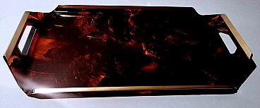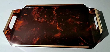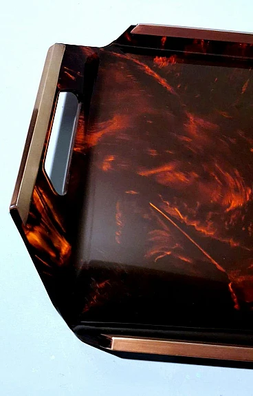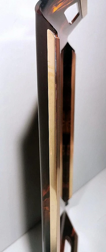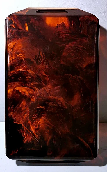Ti invitiamo a leggere l'intera descrizione, poiché ci impegniamo a fornire informazioni tecniche e storiche dettagliate per garantire l'autenticità dei nostri articoli. Questo originale e caratteristico vassoio in plexiglass presenta bordi rialzati. I lati più corti presentano due fessure che fungono da maniglie, mentre la parte superiore dei bordi è rifinita con barre di ottone spazzolato. L'effetto tartaruga sul plexiglass (lucite) si ottiene grazie a uno specifico processo di lavorazione e colorazione. I pigmenti vengono aggiunti al materiale acrilico fuso. Per ottenere l'effetto tartaruga si utilizzano vari colori, in genere toni di marrone, ambra, nero e giallo. Durante il processo di fusione, i colori vengono mescolati in modo non uniforme, creando venature e macchie che imitano il disegno naturale del guscio della tartaruga. Una volta versato nello stampo, il materiale viene riscaldato e poi lasciato raffreddare per completare il processo di indurimento. In questo modo si solidifica l'acrilico e si fissano i colori. Quando il materiale è completamente indurito, viene tagliato e modellato nella forma desiderata, in questo caso un vassoio. Il pezzo viene poi lucidato per ottenere una superficie liscia e lucida, accentuando ulteriormente l'effetto tartaruga. Nel nostro vassoio, questi effetti sono stati creati manualmente da artigiani che hanno manipolato i colori e le venature per ottenere un aspetto più naturale e unico. Il vassoio è stato realizzato nello stile del famoso designer italiano Willy Rizzo e prodotto tra il 1975 e il 1980 in un laboratorio artigianale della Brianza (Lombardia, Italia). Rappresenta un classico esempio del design modernista di quel periodo, caratterizzato da linee pulite, materiali di alta qualità e un'estetica elegante e minimalista. La Brianza è un'area che comprende diverse città come Meda, Desio e Cantù, rinomate per la produzione di mobili di alta qualità. Molte aziende di arredamento di questa attiva zona della Lombardia hanno prodotto pezzi in stile Willy Rizzo, caratterizzati da una meticolosa attenzione ai dettagli e dall'uso di materiali pregiati. Willy Rizzo (1928-2013) è particolarmente noto per i suoi mobili in ottone e vetro. Rizzo ha iniziato la sua carriera come fotografo, lavorando per importanti riviste di moda e ritratti, tra cui "Paris Match". La sua esperienza nel campo della fotografia ha influenzato il suo occhio per il design e la composizione, portandolo a creare mobili che combinano la funzionalità con un'estetica visivamente accattivante. Nel corso della sua carriera, Willy Rizzo ha collaborato con diverse aziende e laboratori artigianali di prestigio, contribuendo a portare i suoi design unici sul mercato internazionale. I laboratori e le piccole imprese della Brianza hanno svolto un ruolo fondamentale nella produzione di oggetti in stile Willy Rizzo, grazie a una lunga tradizione artigianale e alla presenza di numerosi designer e fabbriche specializzate. Questi manufatti, noti per la loro eleganza e qualità, riflettono l'eccellenza del design italiano. Plexiglass, Perspex e Lucite sono marche diverse dello stesso materiale di base, il polimetilmetacrilato (PMMA). Il PMMA è una termoplastica trasparente spesso utilizzata come alternativa al vetro. Sebbene siano disponibili altre plastiche trasparenti, come il policarbonato, il PMMA è spesso preferito per la sua combinazione di trasparenza, leggerezza e facilità di lavorazione. È più resistente agli urti rispetto al vetro, anche se meno durevole di altre plastiche; è più leggero del vetro, il che lo rende più facile da maneggiare e installare; può essere facilmente tagliato, forato, lavorato e incollato, il che lo rende molto versatile per vari usi; ha una buona resistenza agli agenti atmosferici, quindi può essere utilizzato all'aperto senza ingiallire o degradarsi facilmente. Plexiglass: marchio registrato di Röhm GmbH, una delle prime aziende a produrre PMMA. Perspex: marchio registrato di Imperial Chemical Industries (ICI) nel Regno Unito, un altro importante produttore di PMMA. Lucite: marchio registrato da DuPont (e successivamente da Lucite International), utilizzato principalmente in Nord America. Il vassoio è in buone condizioni, con lievi tracce di usura, graffi minimi e piccoli dettagli legati all'età che possono essere facilmente rimossi con lucidanti specifici. Misure: larghezza 55 cm, profondità 32 cm, altezza 5 cm. Per tutte le nostre spedizioni utilizziamo materiali di imballaggio speciali (casse di legno, polistirolo, etc.) per garantire la massima protezione e sicurezza degli articoli.