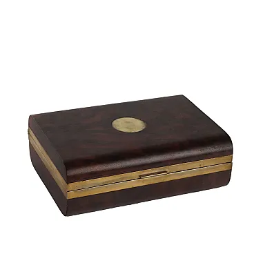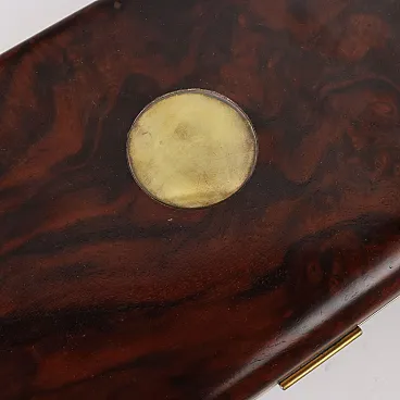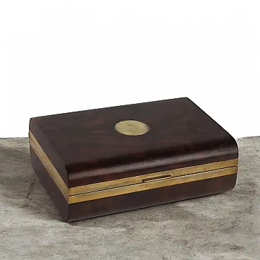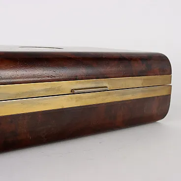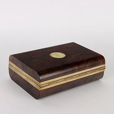 Cofanetto in acero e radica di noce con bordi in ottone, anni '80